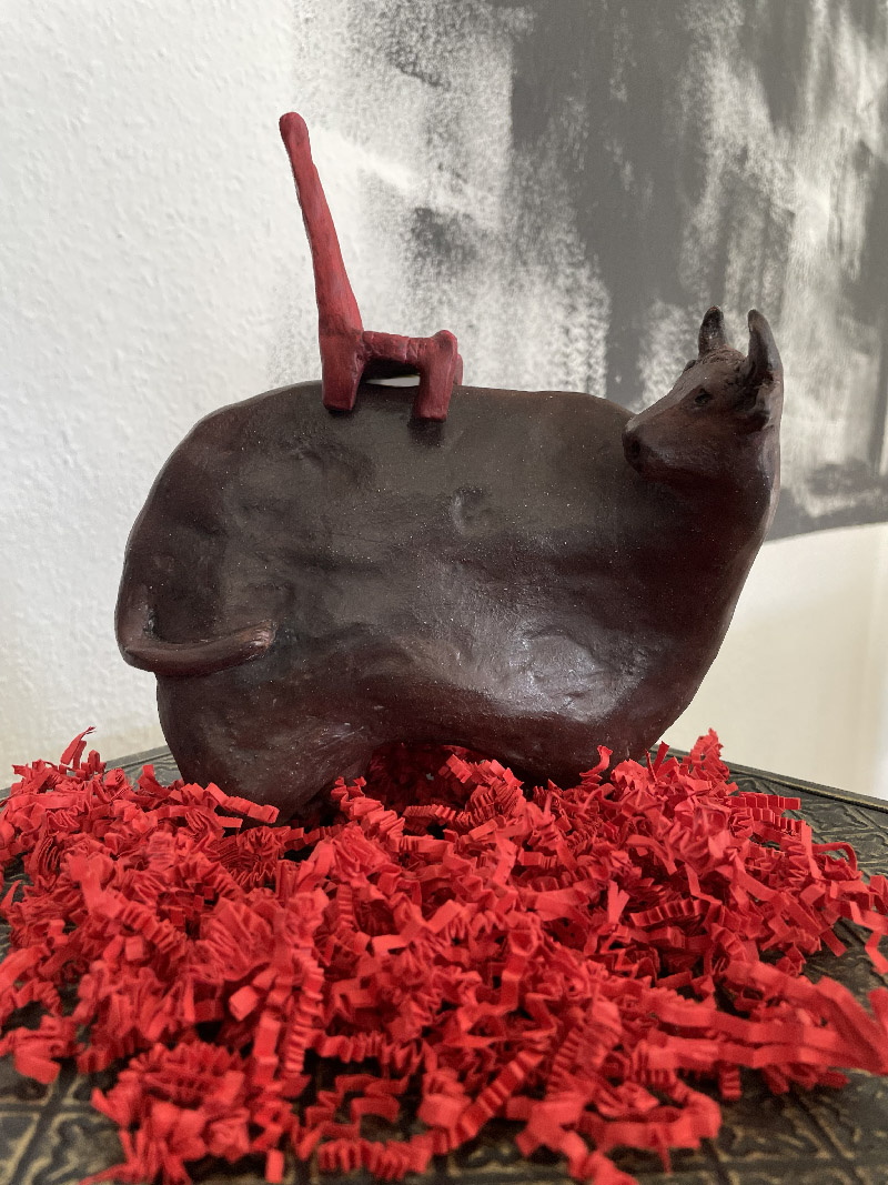 Sculpture terre huilée, patinée